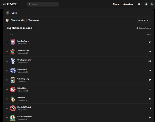 This is the important one for me, as I’ve said several times recently. We should be converting the majority of our big chances- and we’re nowhere close in so many games. On Friday it was ZERO %. We’re creating enough big chances - that’s not the issue. If we can solve our lack of converting big chances, that’s all we need to do to push on to the top 2. |  | |  |