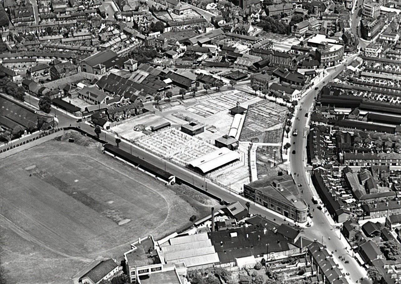 | Super Old pic of Portman Road on 21:04 - Jan 28 by Illinoisblue | That was an intersting location for a cattle market. Did rum ol’ boys from the farms of Suffolk drive into the metropolis of Ipswich with an empty truck and drive home with new cows? Is that how it worked? |