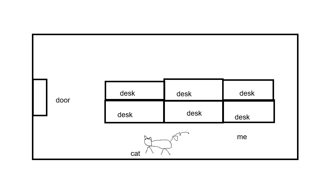 | There is a cat in my office on 13:42 - Apr 8 by NthQldITFC | 'Sofa'? I see no sofa on the room layout diagram? I'm starting to think there's something fishy going on. |