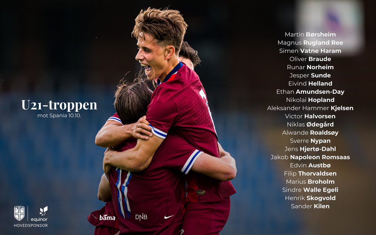 Walle Egeli in Norway U21s Squad Tuesday, 30th Sep 2025 12:12 Blues forward Sindre Walle Egeli has been named in the Norway U21s squad for their friendly in Spain next month. The Norwegian youngsters take on their Spanish counterparts in Guadalajara on Friday 10th October. Walle Egeli, 19, has previously won eight U21s caps, scoring three goals, including one in their last outing, a 5-0 thrashing of Slovenia a month ago, and has also been capped once at full level. ![]()