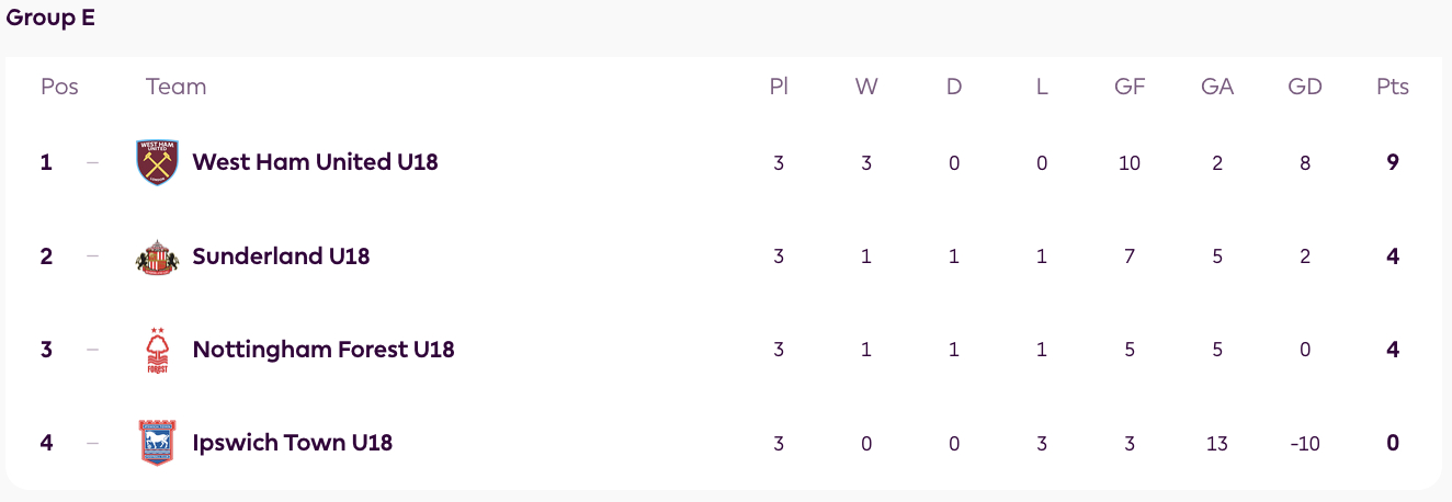 U18s Beaten By Hammers Saturday, 22nd Nov 2025 20:49 Town’s U18s were beaten 5-0 by West Ham United at Playford Road in the Premier League Cup this morning. The Blues, who included 18-year-old striker Kian Berry, who is on trial from Slough Town, for the first hour, went behind in the 13th minute when Chuk Obi put the visitors in front. Obi went on to complete a hat-trick, netting on 35 and 47, before Lewis Beckford added the fourth in the 54th minute and Tyrone Omotoye completed the scoring on 68. Town, who were beaten 8-2 by the Hammers in the league earlier this month, finished bottom of their Premier League Cup group without a point with the East Londoners top and through to the quarter-finals. U18s: W Fletcher, Brown, O’Sullivan, Olawale (Adebayo 85), Wilkinson (Buskell 60), Longwe, Pedder, Wood (c) (McLoughin 85), Yurevich-Burton, Berry (Enkotosia 60), Adetiba. Unused: Twyman. ![]()