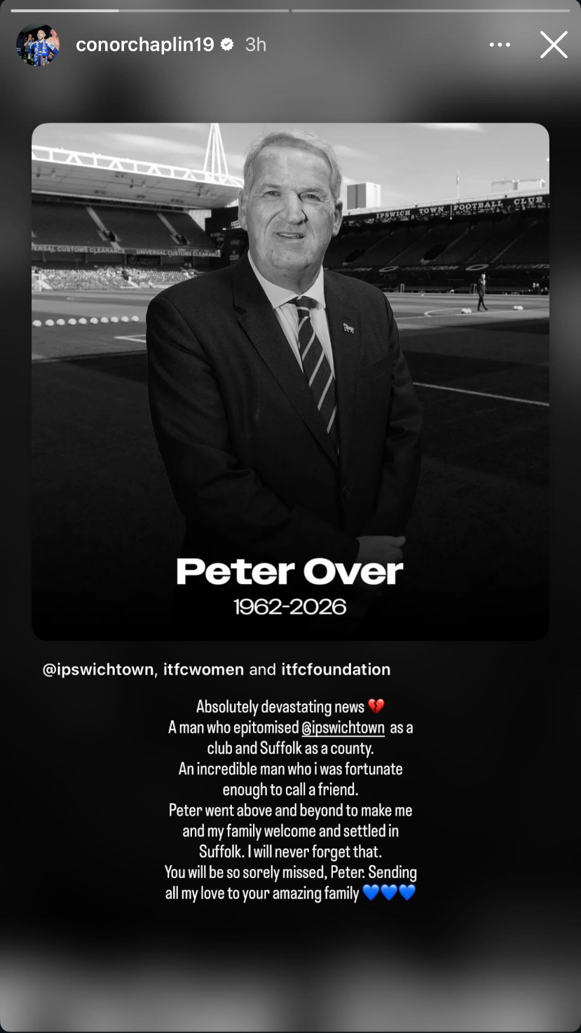 “Everyone within the Ipswich Town family is devastated to hear the news that our good friend and club ambassador Peter Over has passed away,” CEO and chairman Mark Ashton said.